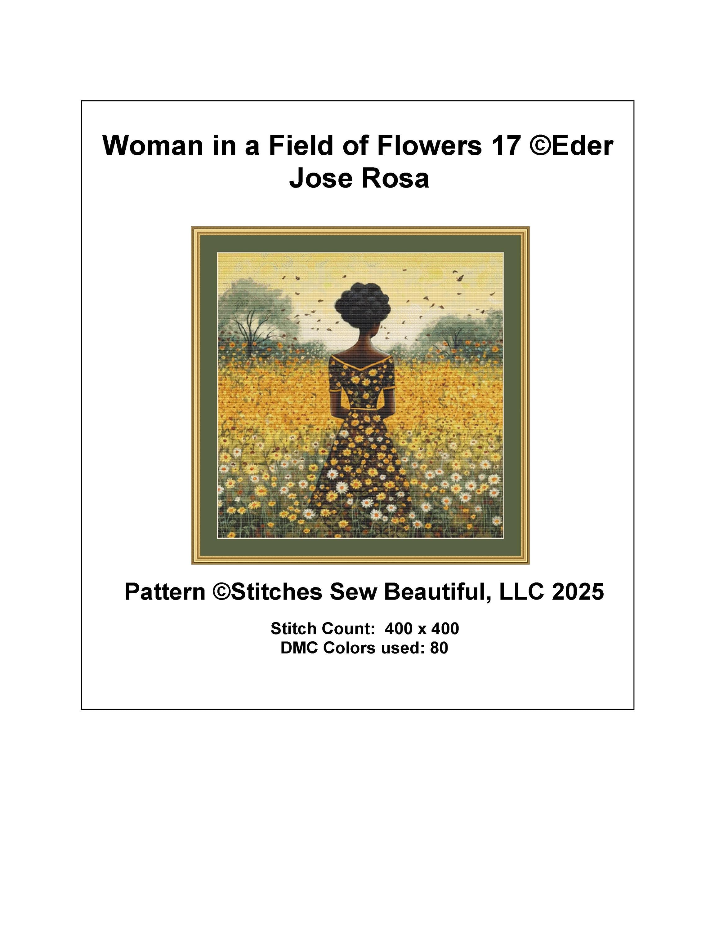 Woman in a Field of Flowers 17 counted cross stitch pattern by Eder Jose Rosa