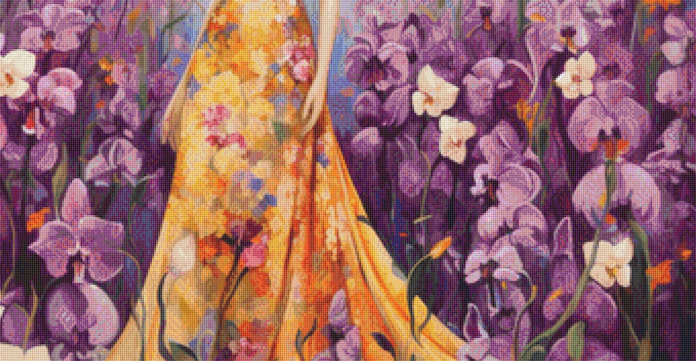 "Woman in a Field of Flowers 4" full coverage cross stitch pattern by Eder Jose Rosa.