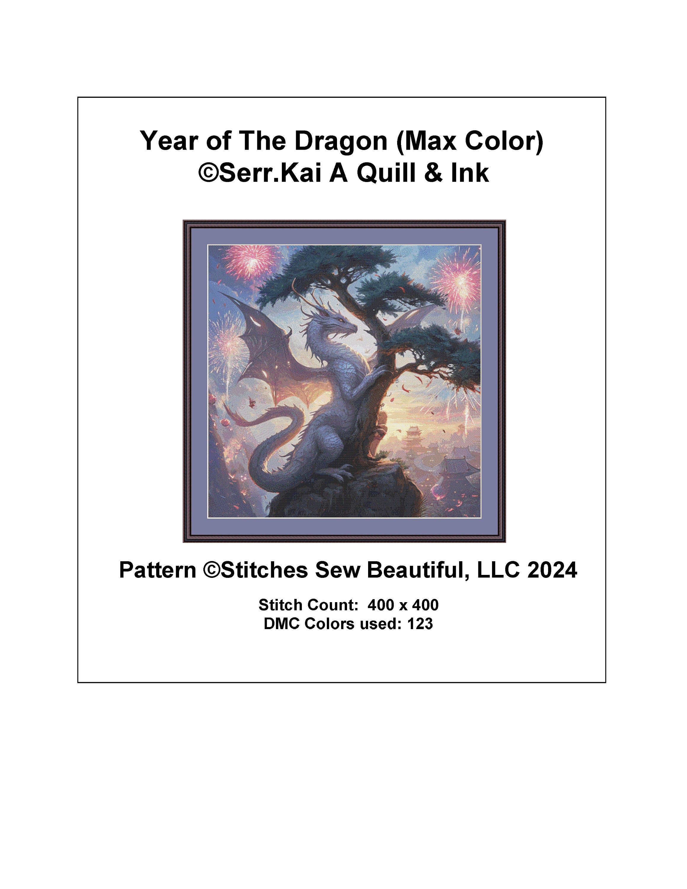 Year of The Dragon (Max Color) counted cross stitch pattern by Serr.Kai A Quill & Ink